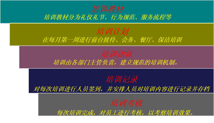 酒店的服務(wù)標準,結(jié)合機關(guān)大樓的特殊性,對各部門制定了工作操作手冊。在規(guī)范